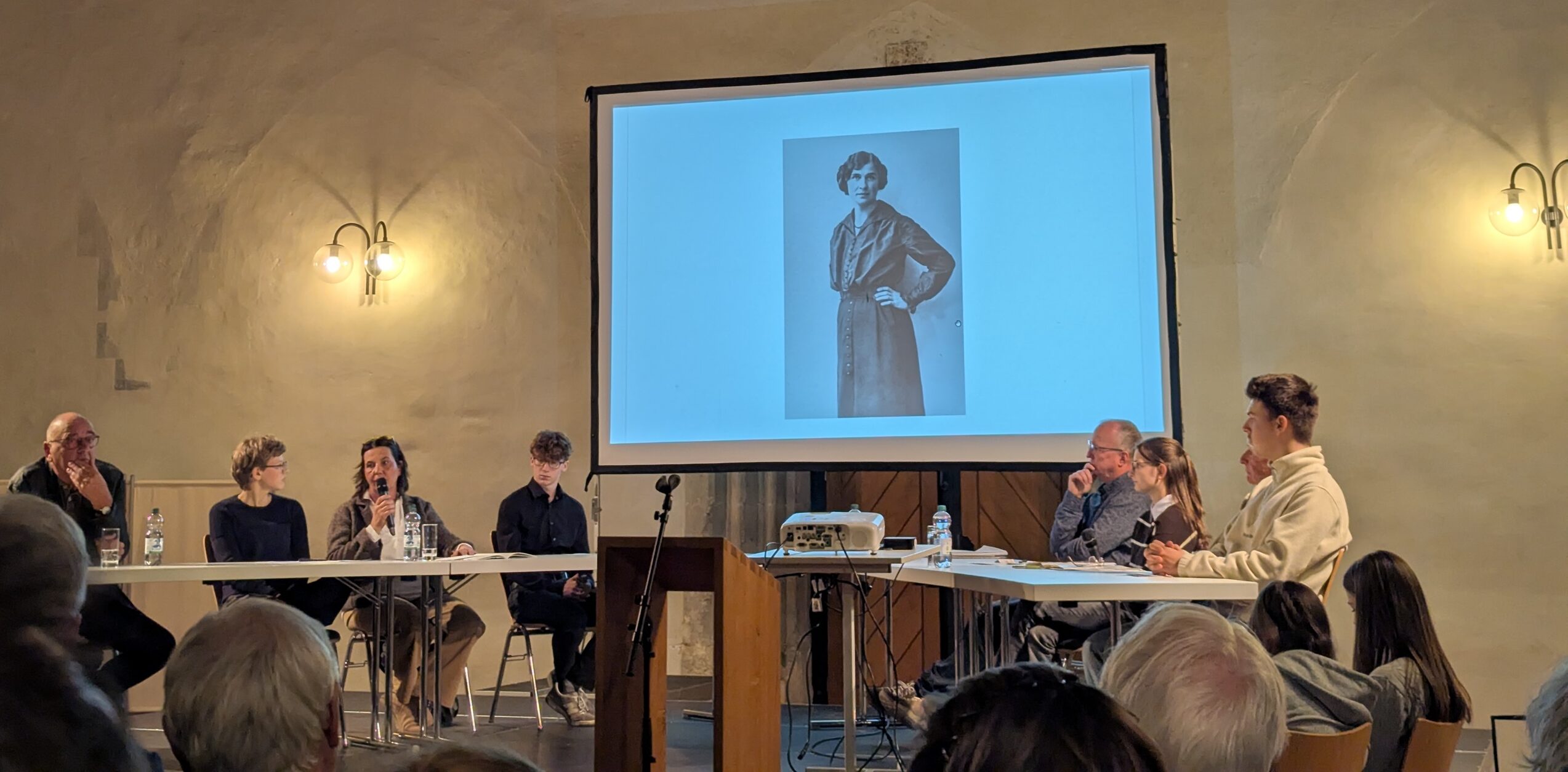 Der Blaubeurer Künstler Dieter Gassebner berichtete im Interview mit Schülern von seinem Onkel Hans Gassebner, der ab 1933 als „entarteter Künstler“ galt. Er kam aus der Wandervogelbewegung und lebte in Bad Urach in einer anarchistischen Kommune und ging mit seiner jüdischen Frau nach der Nazi-Machtergreifung ins Exil nach Dalmatien, wo er später fast verhungerte. Stefanie Dispan erzählte von der Blaubeurer SPD-Gemeinderätin Ernestine Scheer, die sich sehr für Frauenrechte und die AWO einsetzte, unter dem Nazi-Regime aber den Gemeinderat verlassen musste und im Zusammenhang mit dem Attentat auf Hitler 1944 ohne Angabe von Gründen acht Tage gefangen genommen wurde. Dass es nicht nur Parteigänger und Mitläufer in der Blaubeurer Bevölkerung gab, zeigte sich auch am Schlosser Hans Hermann, der 1943 wegen „wehrkraftzersetzender Äußerungen“ acht Wochen ins Gefängnis musste, wie sein Enkel Michel Hermann berichtete. Während des Kriegs starben seine Jugendfreunde, aber: „Sein Glaube, die Gemeinschaft in der bekennenden Kirche zu spüren, das hat seinen Mut sicher gefördert.“